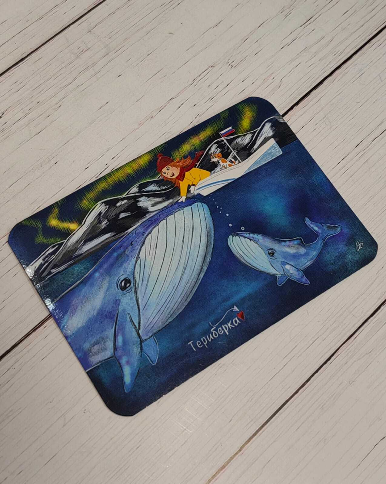Магнит винил "Авторские рисунки М. Окулич : Встреча с китами Териберка", размер: 10*7см