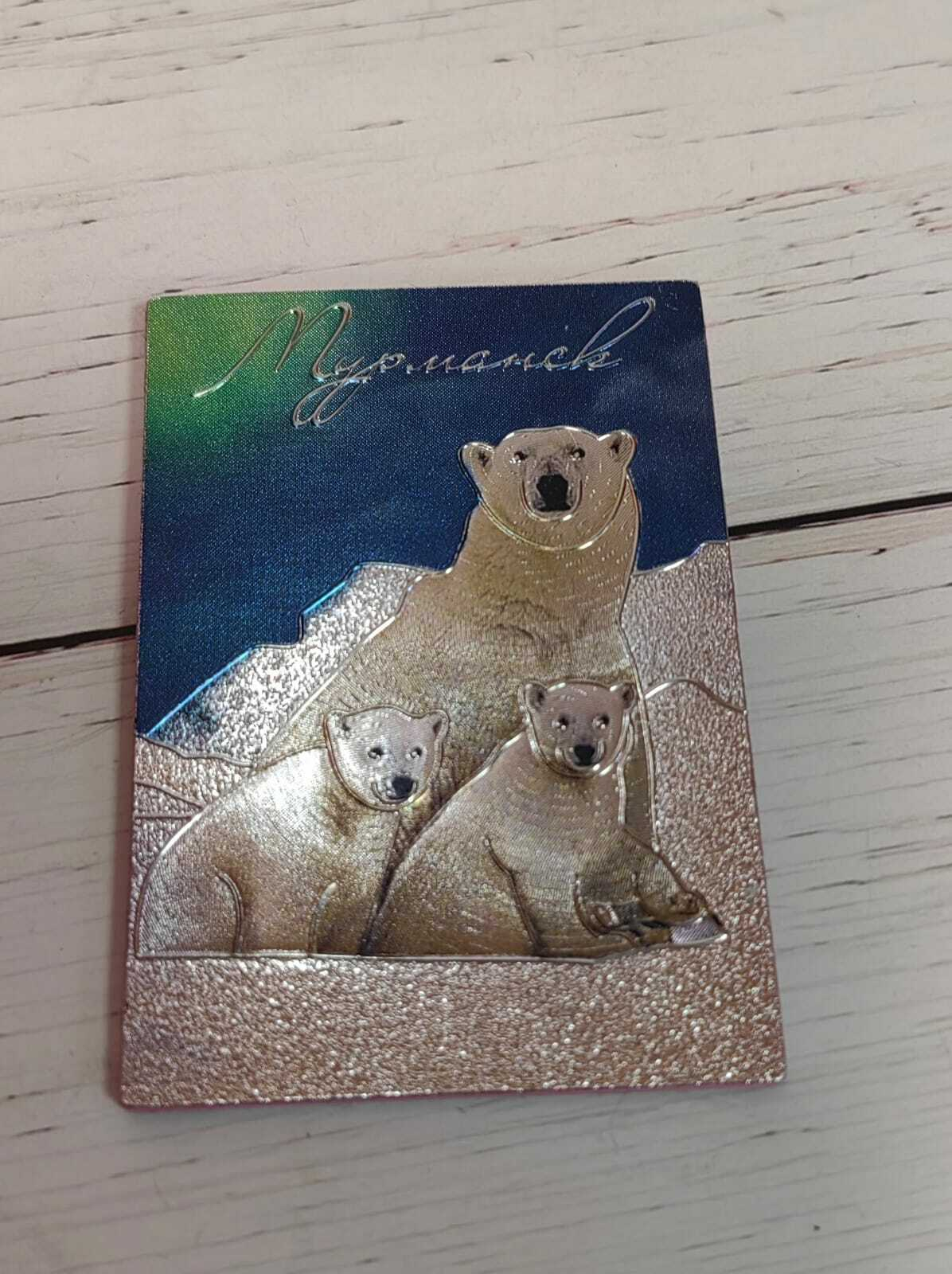 Магнит с металлографическим изображением "Белые мишки" в сочетании с северным сиянием и упоминанием Мурманска — это очаровательный сувенир, который объединяет образы арктической фауны и захватывающее природное явление, характерное для северных регионов. Белые медведи, с ...